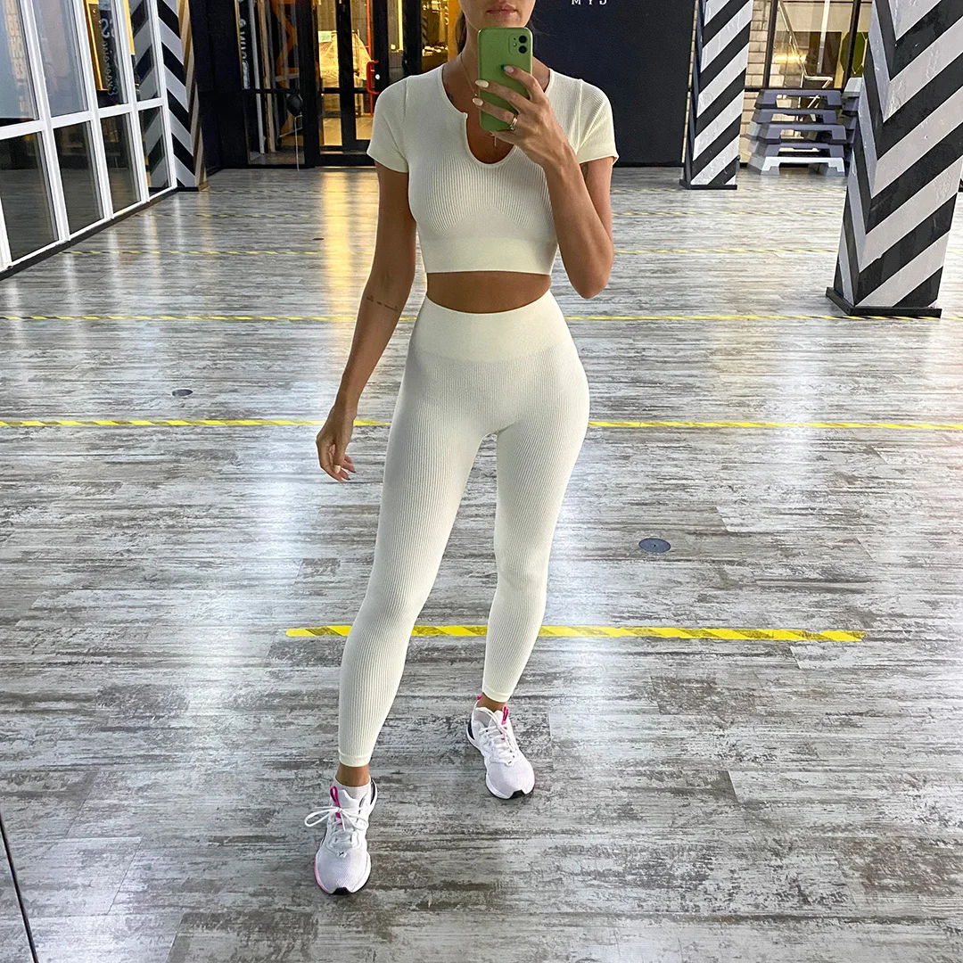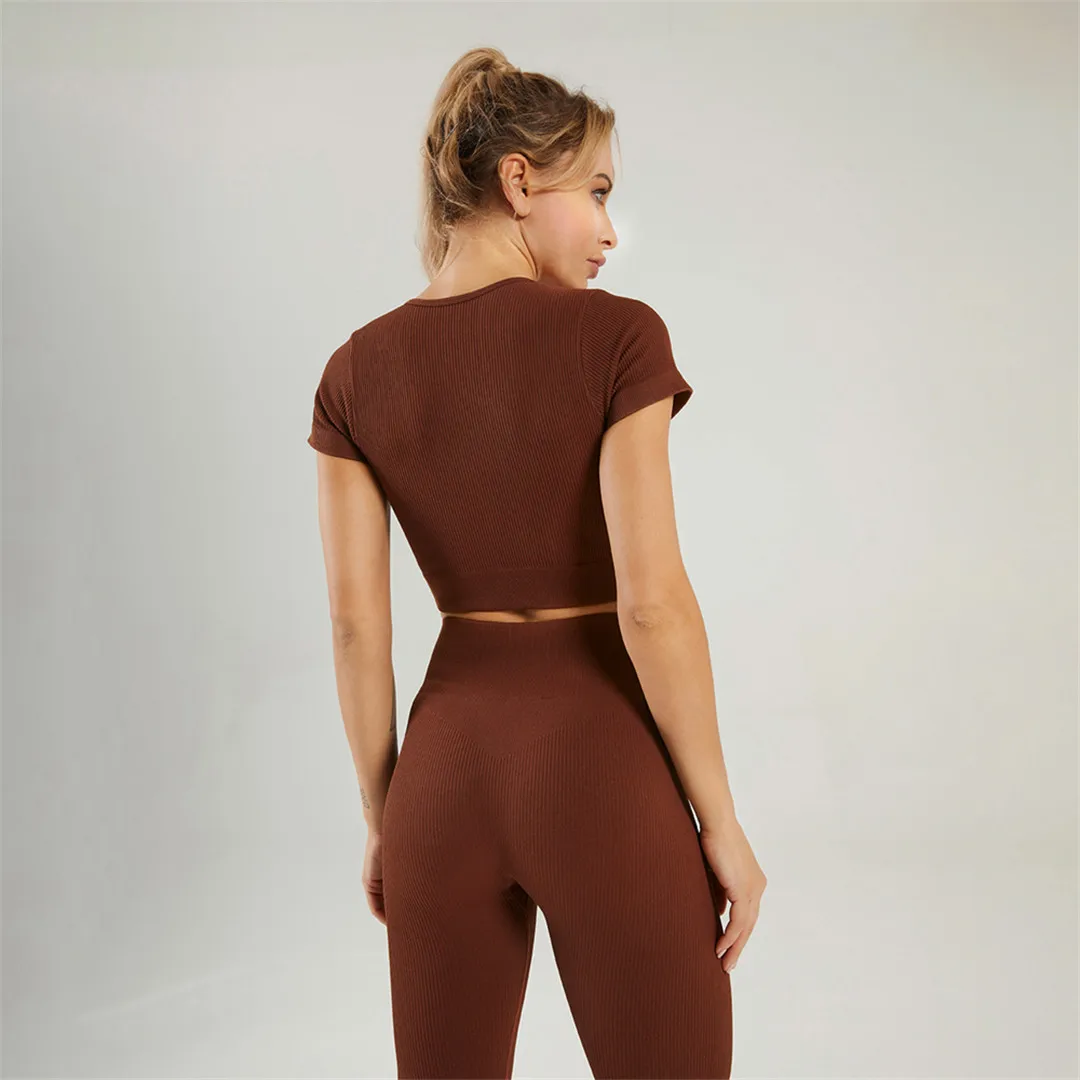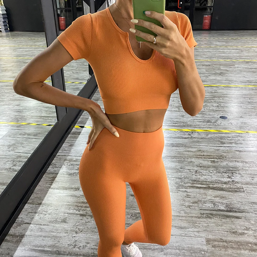 Укороченный топ, комплект для йоги, бесшовная спортивная одежда, же...