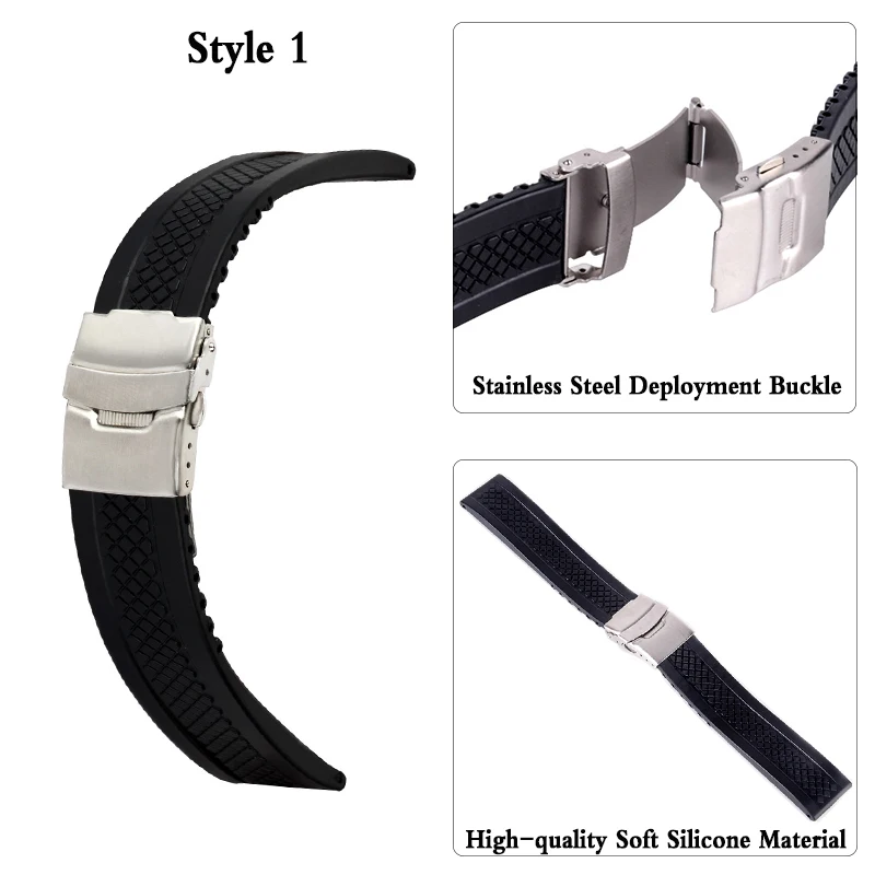 Shellhard 20 мм22 мм24 мм черный ремешок для наручных часов Водонепроницаемый Пластик спортивные часы ремешок с Раскладывающейся часы полос 3 вида стилей