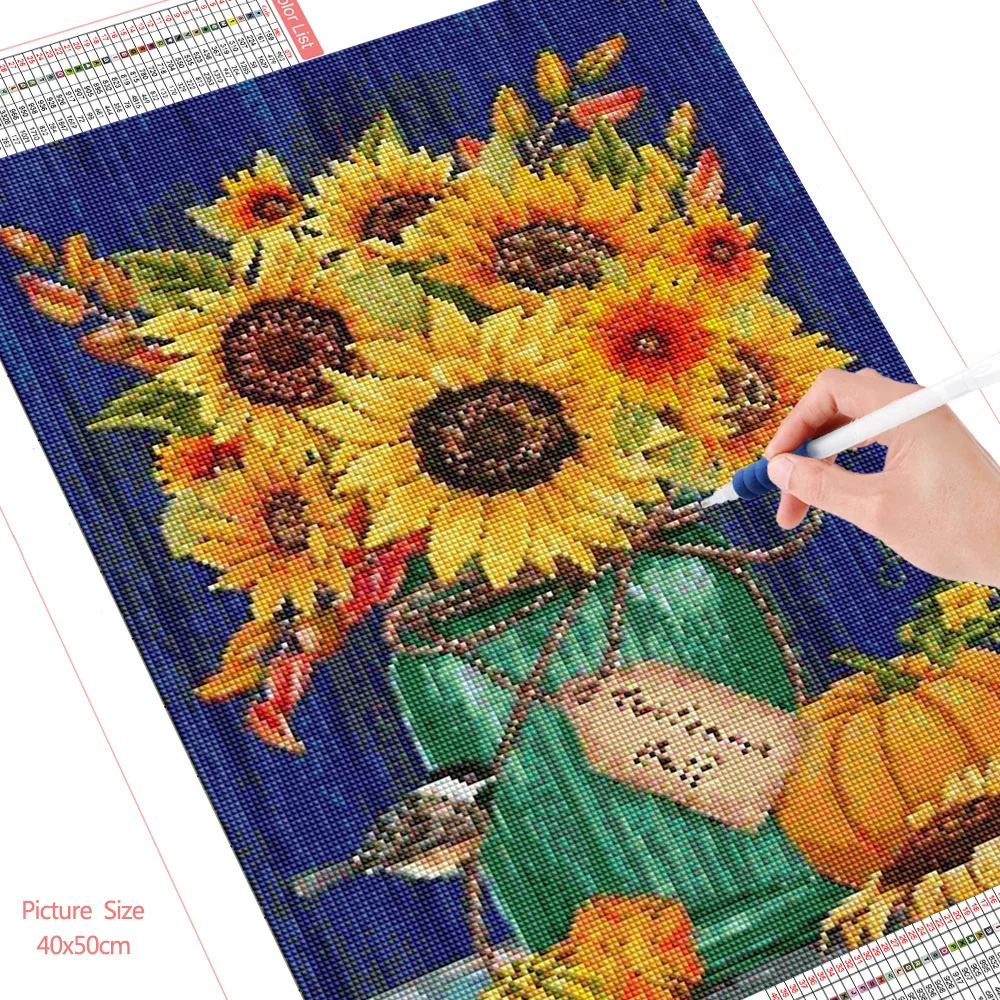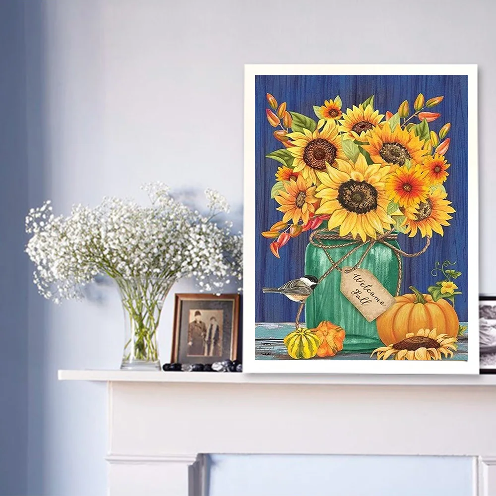 HUACAN Алмазная Цветочная мозаика камни в форме ромбакруглый алмазное Рисование Подсолнечник ваза вышивка Настенный декор со стразами искусство