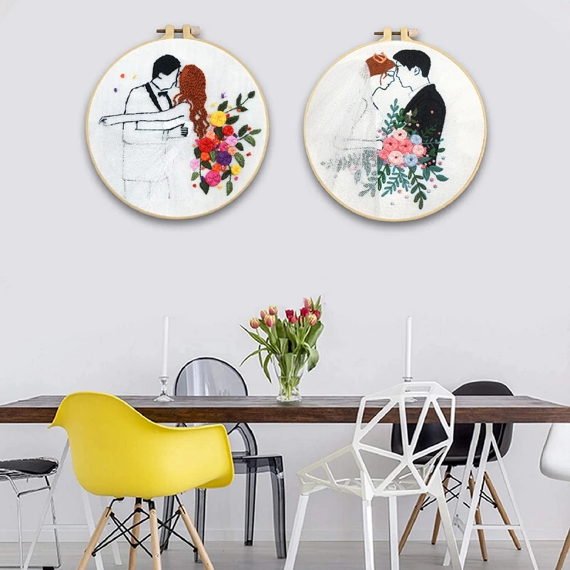 Наборы для вышивания, свадебные узоры для вышивания, набор для начинающих, вышивка обручем и все материалы, вышивка