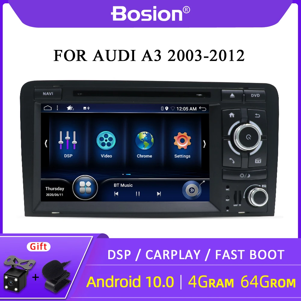 Автомагнитола Bosion, мультимедийный проигрыватель на Android 10,0 с DVD, радио, GPS-навигацией для Audi A3 8P 2003-2012, 2 Din 4 + 64G IPS DSP CarPlay