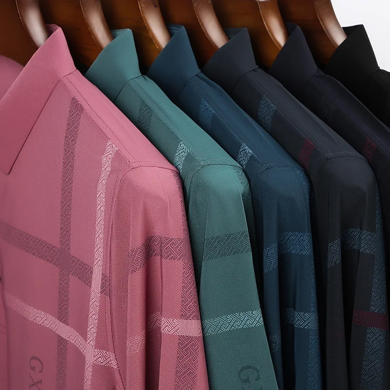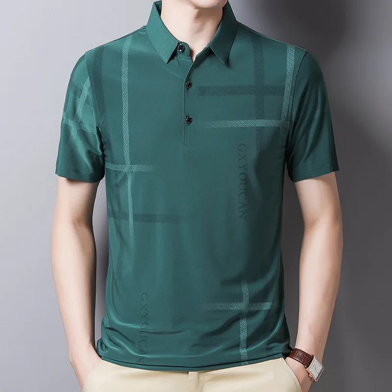 Рубашка-поло мужская приталенная, Модная тонкая рубашка с короткими рукавами, полосатая рубашка-поло, Корейская одежда, черный цвет, на лето