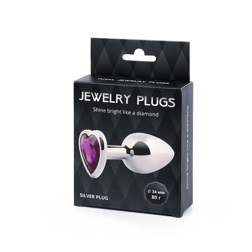 Анальная пробка с кристаллом сердечко, металлическая, силиконовая, золотистая, серебристая, фиолетовая