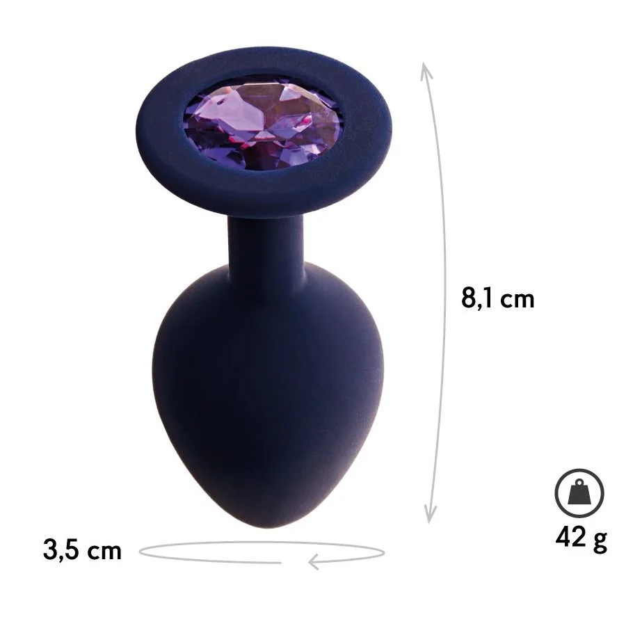 Черничная анальная пробка с фиолетовым кристаллом Gamma S - 7,2 см, M - 8.1 см, L - 9.4 см