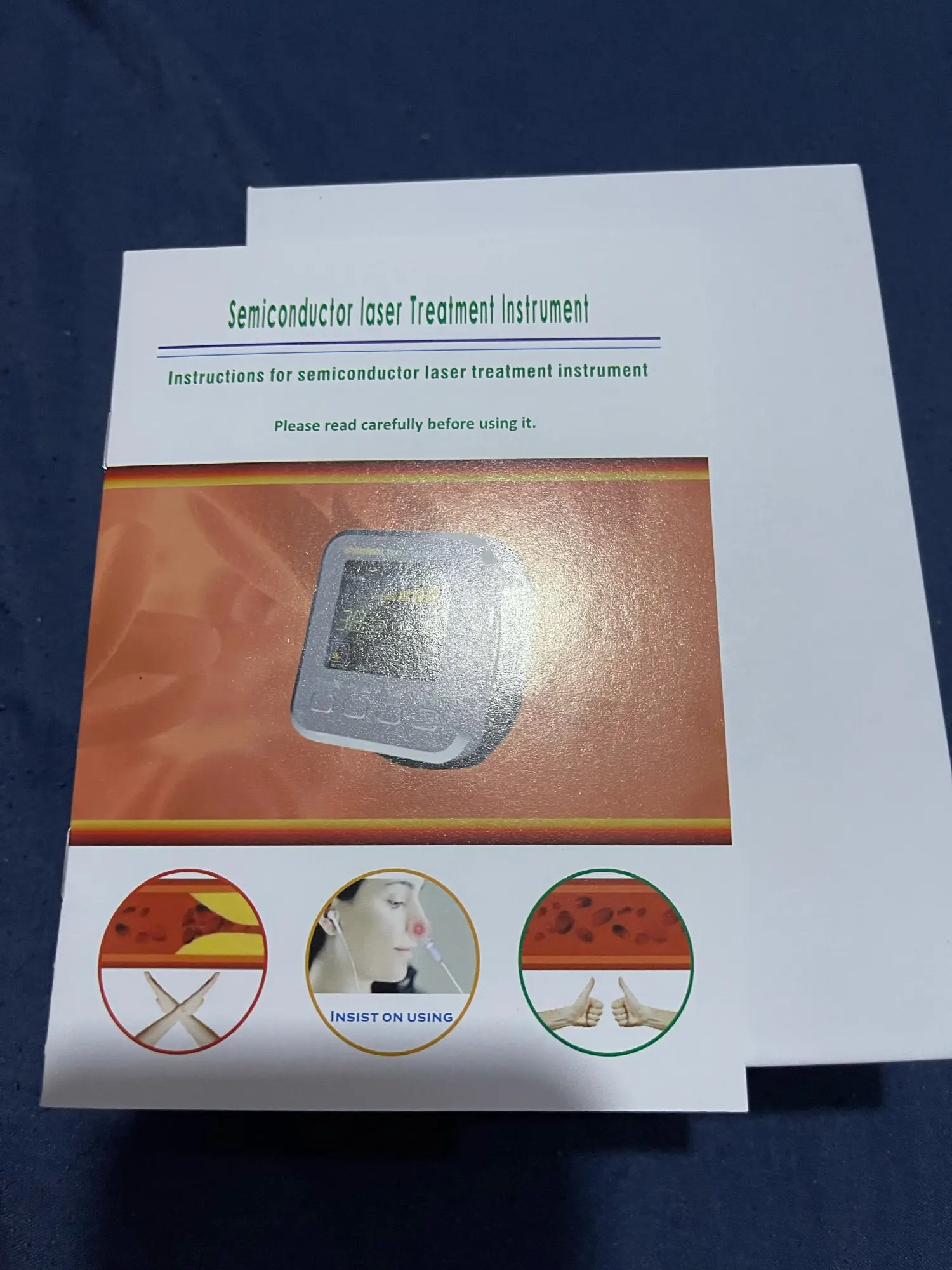 Управление панелью управления(1) Нажмите кнопку «Вкл/Выкл» в течение 3 секунд, чтобы включить устройство. По умолчанию лазер на запястье и носовая полостьЛазер активируется в то же время, и самая сильная передача (самая сильная передача-непрерывный волновой режим)Запястный лазер назальный лазер и непрерывный волновой дисплей иконы мигают время облучения по умолчанию составляет 30Минут.Слегка нажмите кнопку питания, чтобы остановить и запустить состояние облучения, оно автоматически отключится после1 минута остановки, и будут голосовые подсказки. (2) Нажмите кнопку «time *», чтобы отрегулировать время облучения, используя 10-mmute систему максимум 60 минут.Удерживайте кнопку времени, время будет длиться от 10-60 минут. (3) Нажмите кнопку «режим». Режим от. A. Облучение запястья и облучение полости носа(Это режим по умолчанию для включения питания);b. Облучение запястья и точка облучения тела; c. Носовая полостьОблучение; d. Акупунктурное облучение; e. Облучение запястья; Цикл в свою очередь и есть голосовые подсказкиВыбранный режим будет мигать непрерывно (4) нажмите кнопку «Укрепление», вы можете свободно выбрать от 1 до 5 уровней, и есть голосовые подсказки1 -4-прерывистый волновой режим, а Шестерня 5-непрерывный волновой режим(5) при зарядке на дисплее отображается только значок индикатора батареи после завершения зарядки,Голосовые подсказки, что зарядка завершена. Он автоматически отключится после завершения запроса.