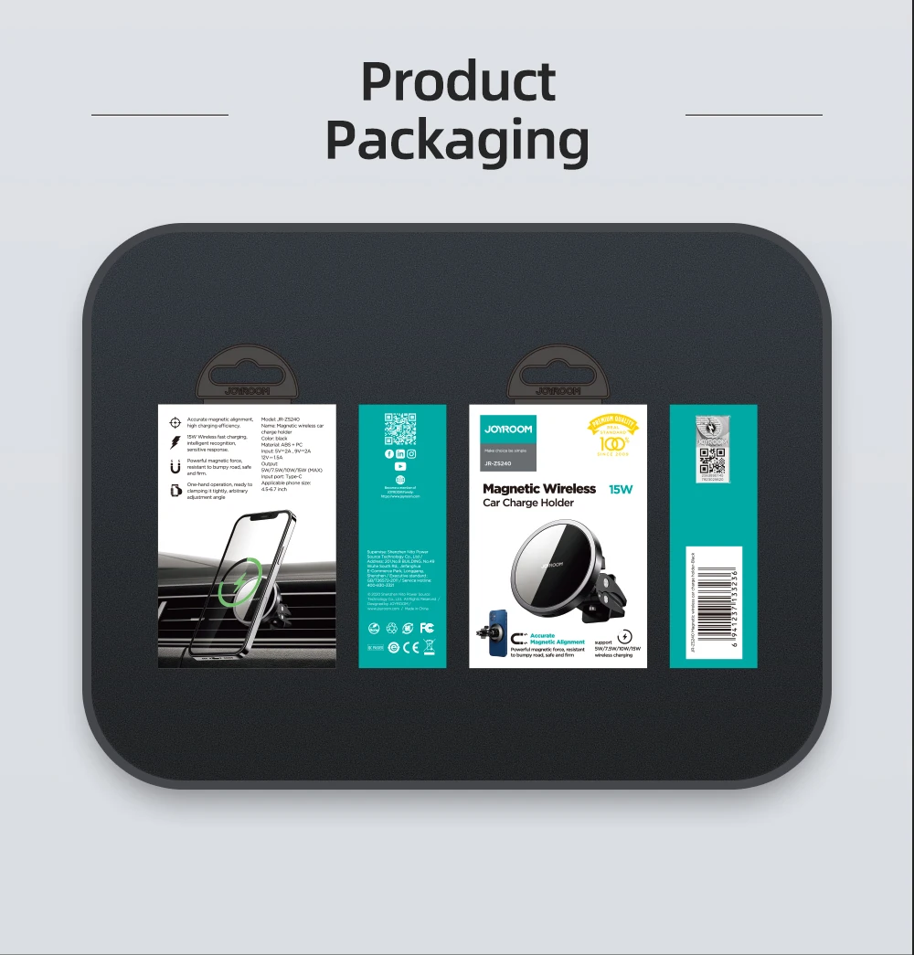 Бренд: JOYROOMМодель: JR-ZS240Название: магнитное беспроводное автомобильное зарядное устройствоВход: 5V/2A 9В/2A 12V/1.5AВыход Мощность: 5 Вт/7,5 Вт/10 Вт/15 Вт (макс.)Выходной интерфейс: Type-CСовместимость: сотовый телефон с магнитной функцией Rr с магнитным чехол для телефонаПоложение фиксации: крепление на вентиляционное отверстиеПрименяемые протоколы быстрой зарядки: быстрая зарядка QC 3,0Размер изделия: 60*82 ммСетка Weigt:86gМатериал: АБС-пластик + ПоликарбонатЗарядное устройство: по всему миру для 4,7-6,5 дюймовыйж смартфонРасстояние зарядки: ≤ 8 ммВес брутто: 148 г