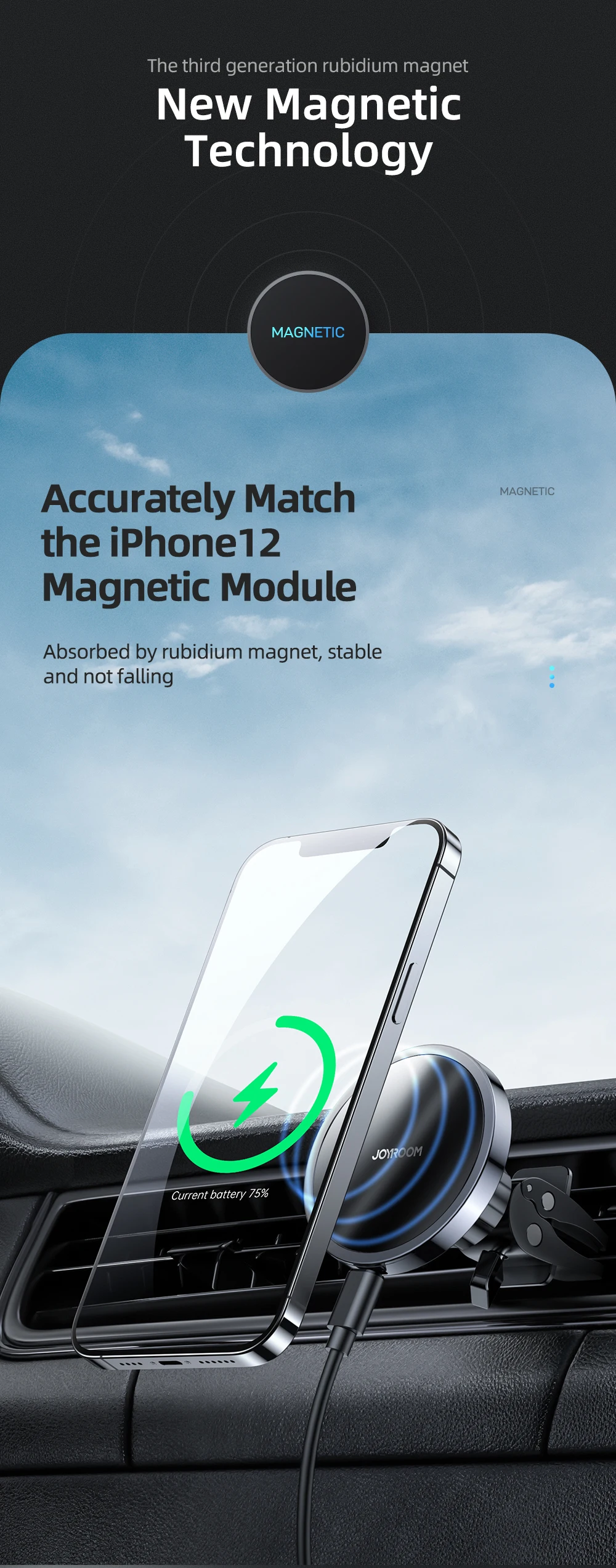 JOYROOM 2021 Новинка 15 Вт Qi Автомобильный держатель для телефона магнитное беспроводное автомобильное зарядное устройство для iPhone 12 Индукционная быстрая Magsafe Беспроводная зарядка для iPhone 12 Pro Retailler упаковка Прямая доставка