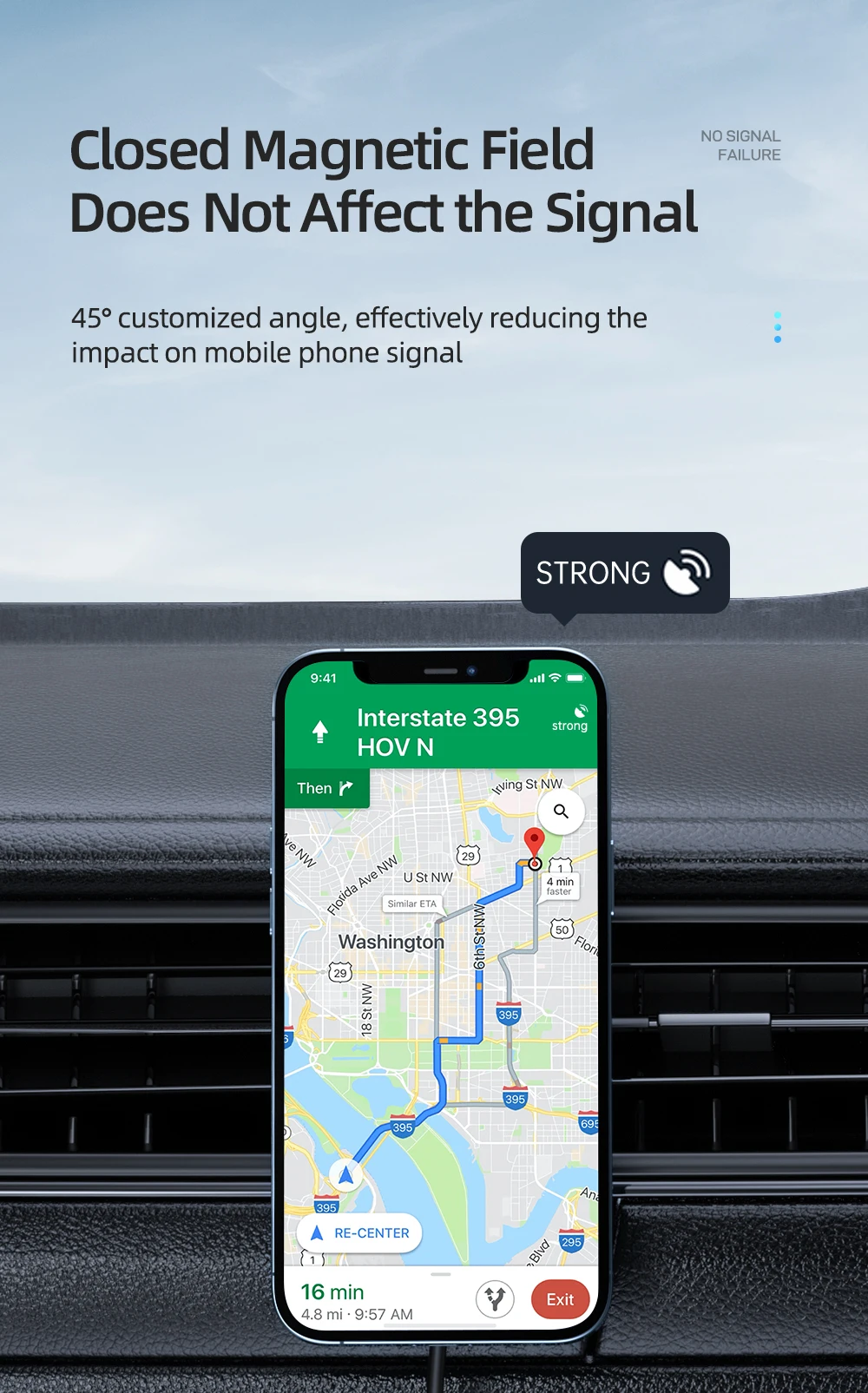 7 шт. 45 ° настраиваемое и постоянное магнитное поле, минимизирующее воздействие на мобильный телефон и скорость зарядки