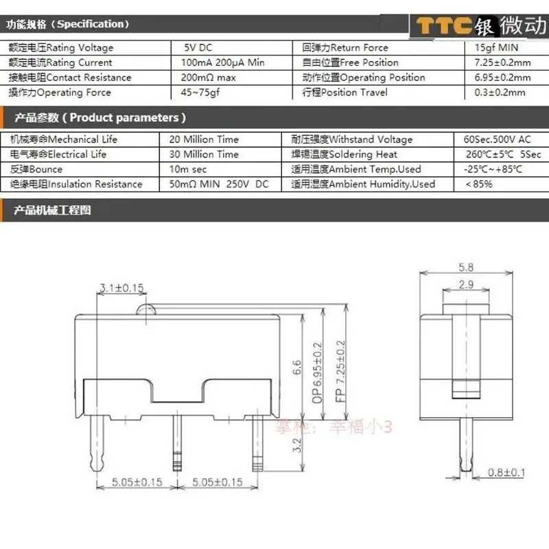 TTC золотой микро переключатель:Относительно умеренная прочность, относительно четкий, короткий ход, отскок компактный, быстрый, и сила отскока очень равномерная, консервативная жизнь составляет 30 миллионов жизней!TTC gold micro switch был протестирован американской международной лабораторией UL и Европейского союза/ENEC, не только через 30 миллионов механической жизни, но и через 30 миллионов электрической жизни, реальный срок службы 30 миллионов энергии, стабильный и надежный, большое количество брендов мыши были выбраны с момента массового производства в начале