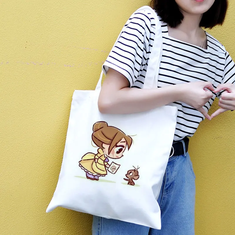 Холщовые сумки через плечо Kawaii С мультяшным принтом принцессы, л...