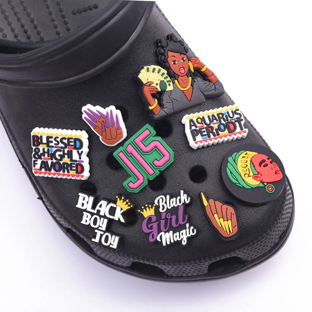 Лидер продаж, танец для женщин, Кроксы, подвески для обуви, любовь, аутизм, дружественное украшение, черная девушка, волшебные аксессуары, подарок для детей