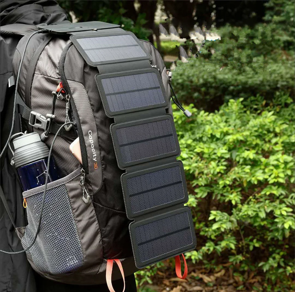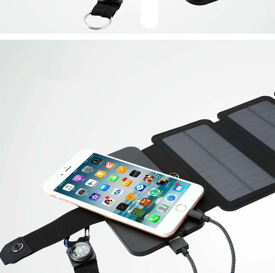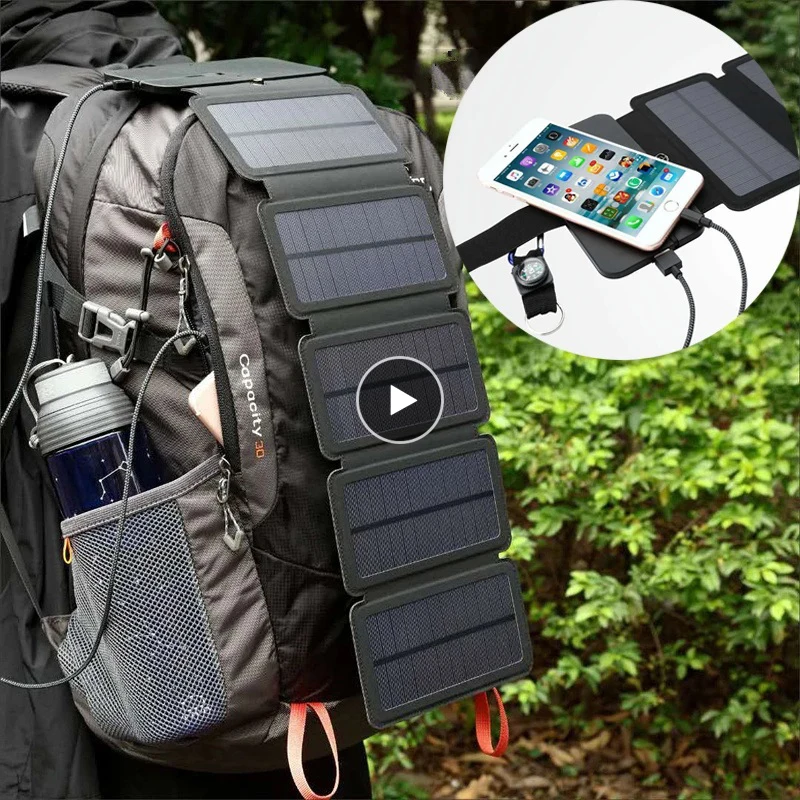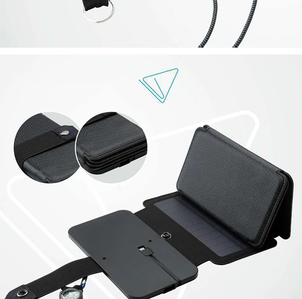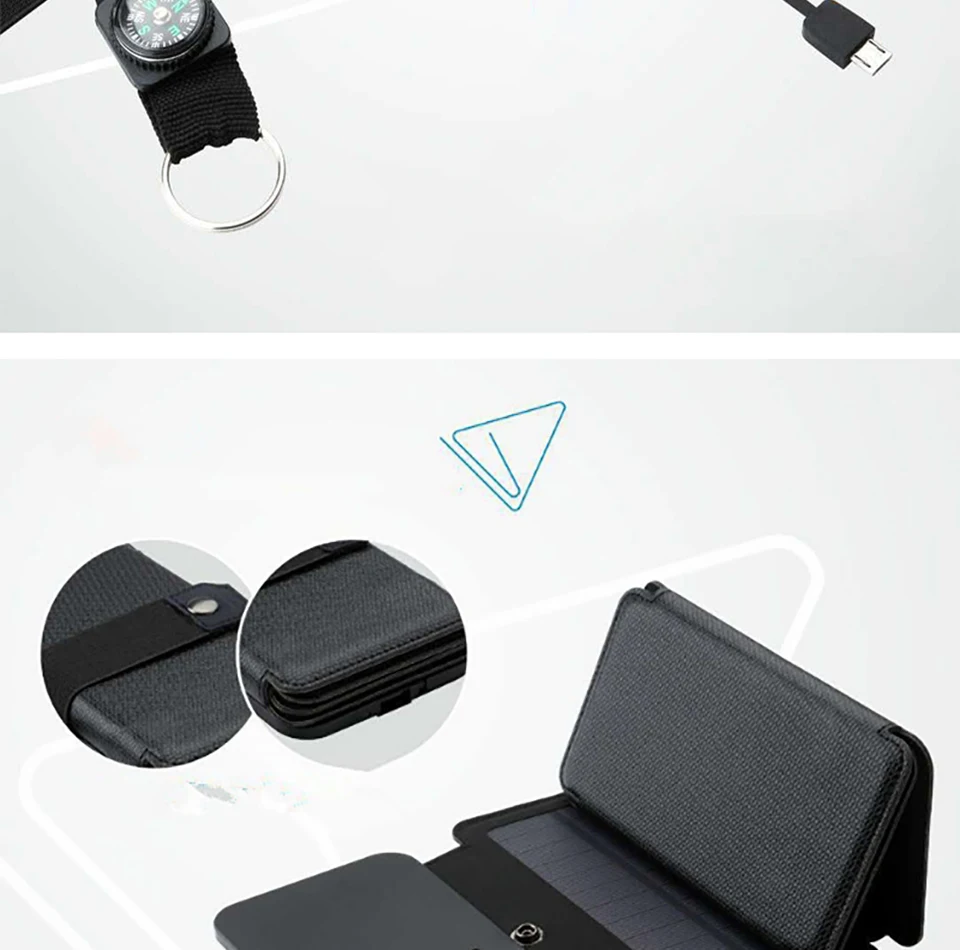 5 складных высокоэффективных солнечных панелей, что обеспечивает большую мощность и стабильный опыт зарядки на солнечной батарее