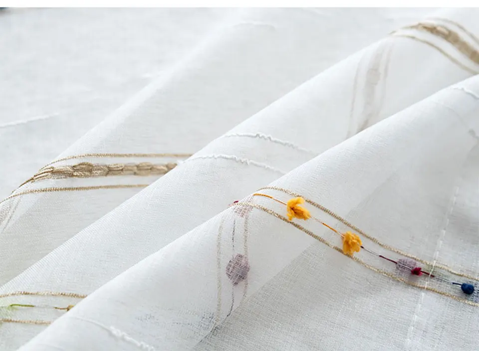 Штора с вышивкой для гостиной, спальни, цветочные тюлевые занавески