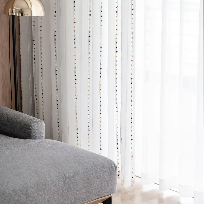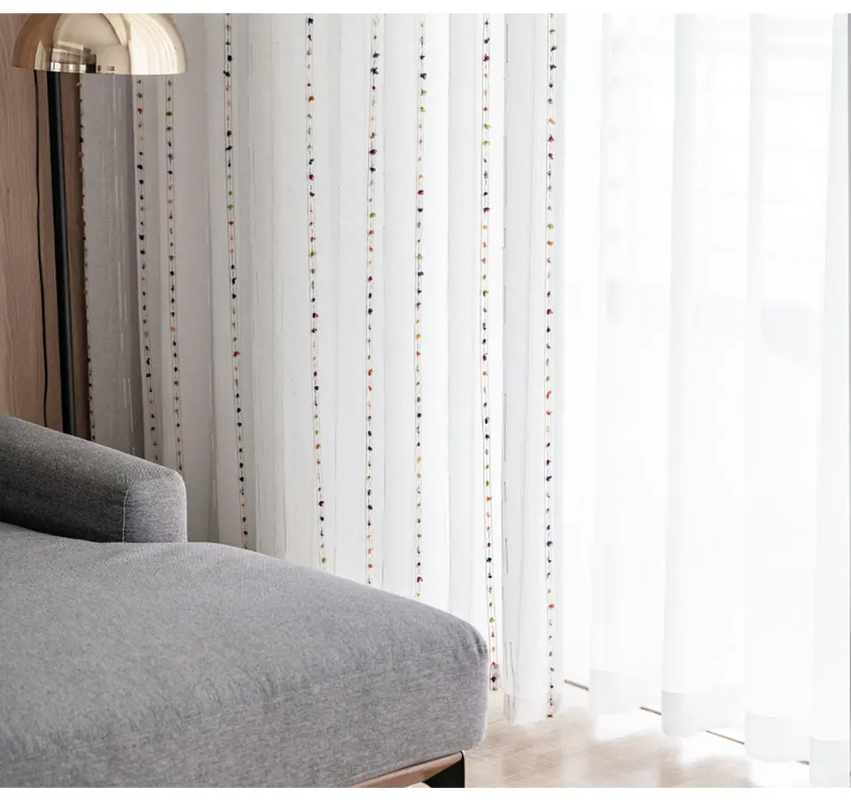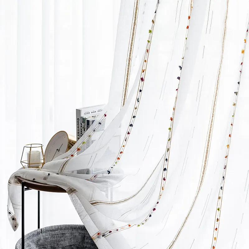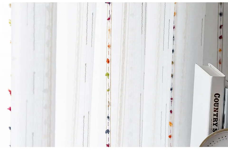 Белая Льняная Тюлевая занавеска с вышивкой для гостиной, цветные полосатые прозрачные Занавески Из вуали для спальни, занавески, потайной Декор