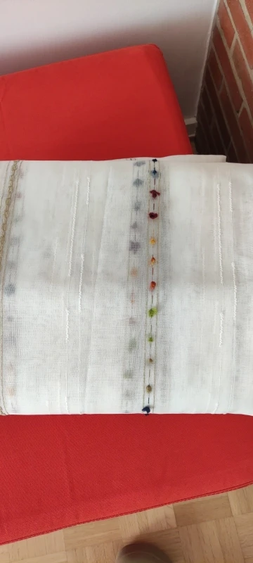 Занавеска на окна из белого тюля с вышивкой облака и радуги, для го...