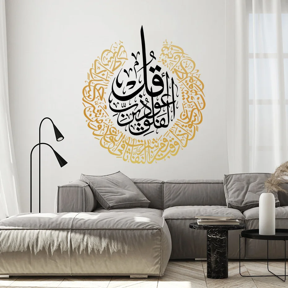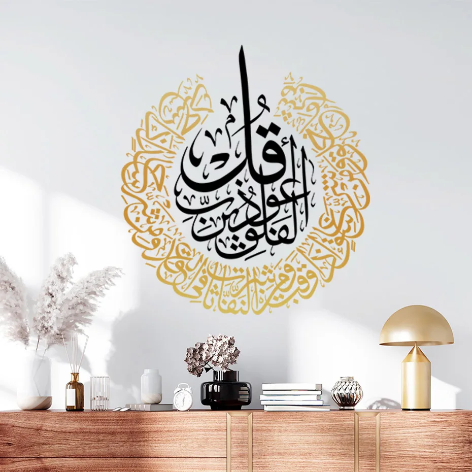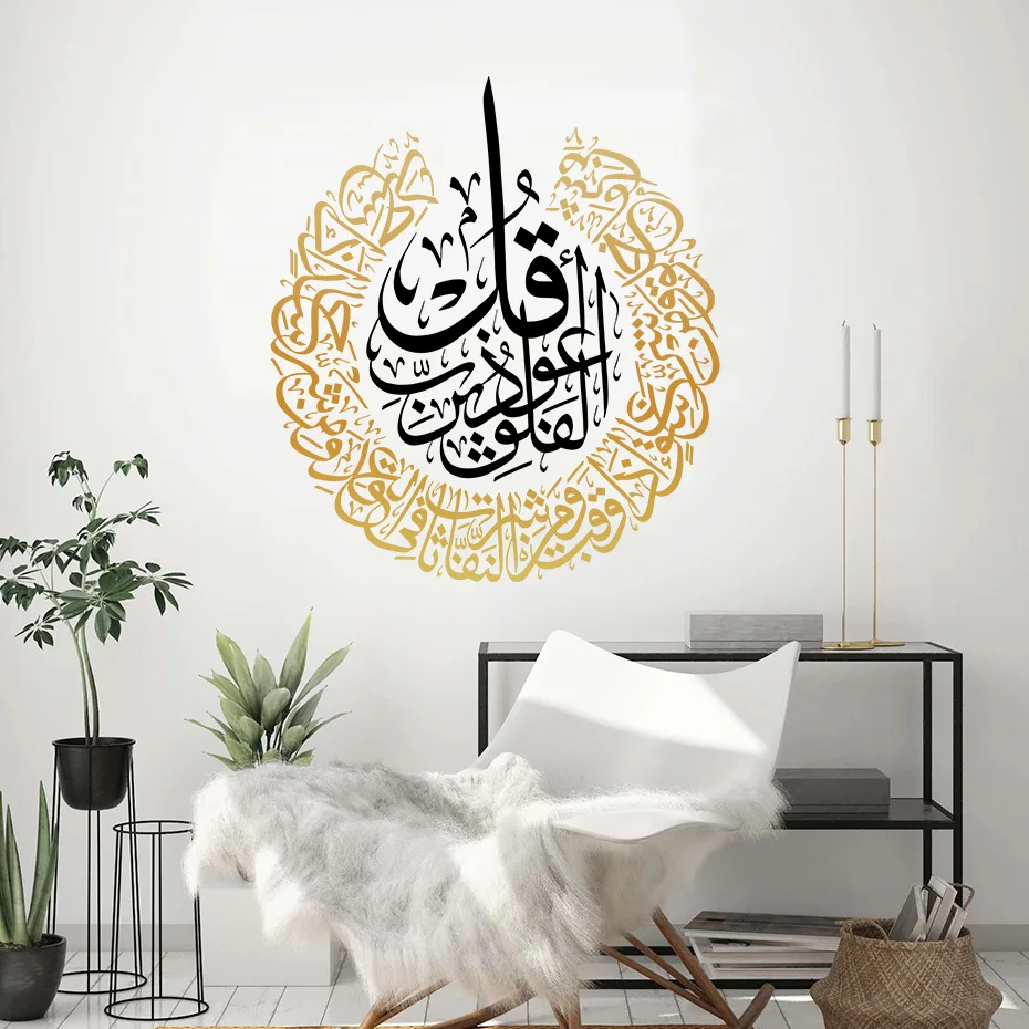 Мусульманская каллиграфия, наклейка на стену из сурата, аль-фалака, золотые и черные мусульманские наклейки, фрески, ИД Мубарак, интерьер гостиной, домашний декор