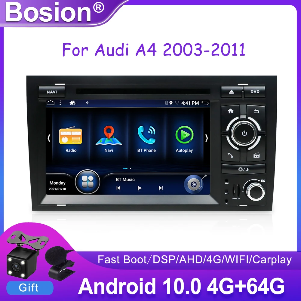 Автомагнитола Bosion Android 10, мультимедийный плеер для Audi A4 B8 S4 B6 B7 RS4 8E 8H B9 Seat Exeo 2003-2011 Авто 2Din IPS DSP CarPlay