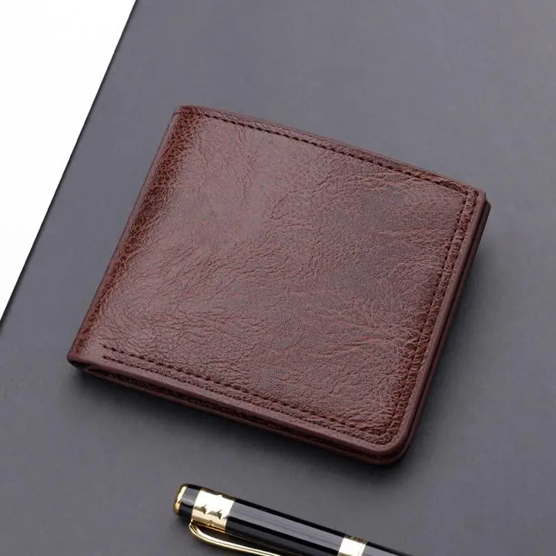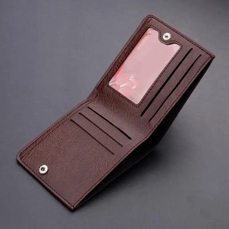 Мужской короткий кошелек из ПУ кожи, с металлическим краем