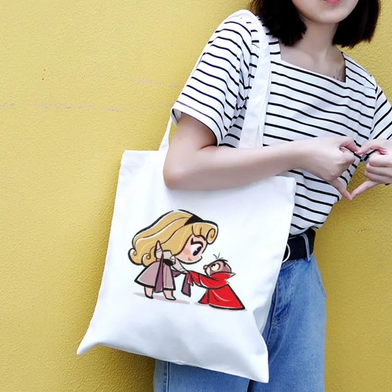 Холщовые сумки через плечо Kawaii С мультяшным принтом принцессы, л...