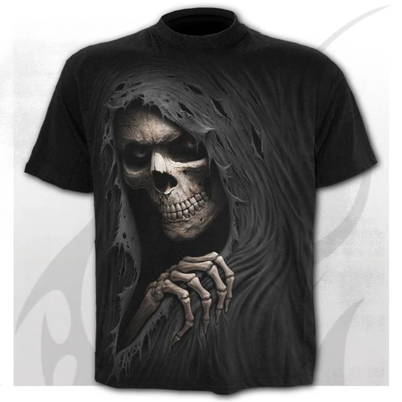 Новинка лета 2021, Мужская футболка с черепом и страшным принтом, Повседневная футболка с круглым вырезом и рукавами 3D, удобная уличная одежда
