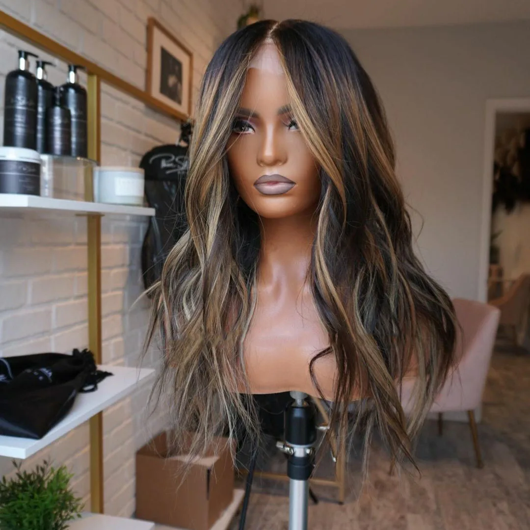 Парик средней длины с изображением коричневого кружева с детскими волосами, длинные натуральные волнистые человеческие волосы Remy, парики на сетке, собранные для женщин