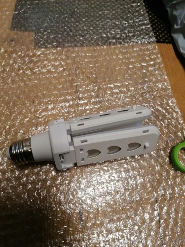 Пришла лампа быстро вместе с другими заказами. Светит нормально, довольно компактная. Греется сильно с тыльной стороны. Но горелым пластиком не воняет.