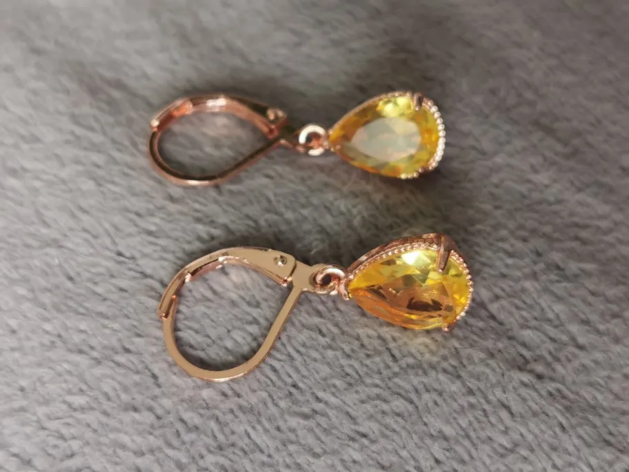 Женские Висячие серьги в форме капли воды S925 с желтым камнем и фианитом, свадебные ювелирные украшения, висячие серьги, аксессуары CCE624