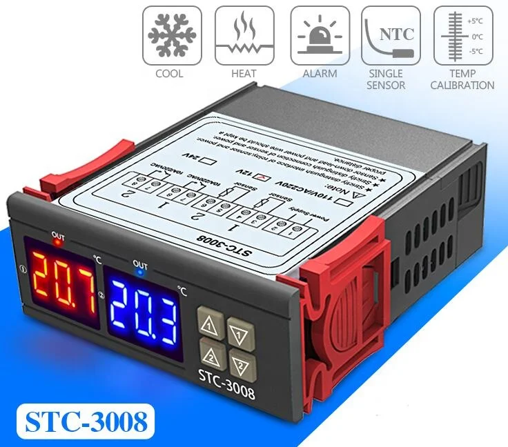 ИНСТРУКЦИЯ. Коды. Функции. По умолчанию. F1. Температура заданного значения -50,0 ~ 99,9 °C. 10,0 °C. F2. Разница заданного значения 0,3 ~ 10,0 °C. 0,5 °C. F3. Время стабилизации показаний. 1 ~ 10 минут. 3 минуты. F4. Параметры калибровки -10,0 °C ~ 10,0 °C. 0 °C. Инструкция по эксплуатации: Способ проверки параметров: В рабочем состоянии нажмите кнопку «вверх», она отображает значение настройки температуры; нажмите кнопку «вниз», она отображает значение разницы. Способ установки параметров: В работающем состоянии контроллера нажмите "s" Ключ в течение 3 секунд или больше, чтобы войти в меню изменить режим, на экране отобразится первый код меню "F1". Регулировка происходит кнопкой вверх и вниз. Нажмите кнопку «s», чтобы отобразить значение параметра в текущем меню. Нажмите и удерживайте кнопку S и регулируйте кнопками «вверх» или «вниз» выбирают необходимый параметр, после завершения настройки нажмите и отпустите кнопку «(I)», чтобы сохранить измененное значение. Если в течение 10 секунд не зафиксировать отредактированное значение, то контролер не сохранит параметр. Восстановление данных системы. При нагрузки контролер будет проверять себя, экран будет отображать "Er", если на табло есть ошибка нажмите любую клавишу, прибор восстановит значение по умолчанию, переключиться в обычный рабочий режим, в таком случае рекомендуется сбросить значение параметра. В подключенном состоянии контроллера нажмите и удерживайте кнопку "(I)" 3 с., чтобы выключить контроллер. Что бы включить нажмите и удерживайте "(I)" 1 с. Во включенном состоянии контроллер отображает текущее значение измеренной температуры. контроллер может переключать режимы работы между нагревом и охлаждением. С помощью контроллера можно подключить холодильный шкаф и т.д. Контролер включает сигнал тревоги в аварийных ситуациях, отображается “EE”, в этом случае нажмите любую клавишу для отключения звукового сигнала. С работка сигнал тревоги происходит, когда температура не соответствует установленной, контроллер активирует функцию оповещения об ошибках. Когда работает зуммер показания температуры не отражаются на табло, отображается «HH», нажмите любую клавишу, чтобы отменить звуковой сигнал, система обратно вернётся в рабочий режим. Правила подключения и эксплуатации: Подключение необходимо производить согласно инструкции (паспорта) на прибор, соблюдая порядок подключения проводов. Не допускается подключение проводных клемм без отключения электричества. Не допускайте использование прибора в условиях повышенной влажности, высокой температуры, сильного электромагнетизма или коррозии. Обратите внимание: Блок питания должен соответствовать значению напряжения, указанному в инструкции. Чтобы избежать помех, щюп датчика и провод питания должны находиться на расстоянии.
