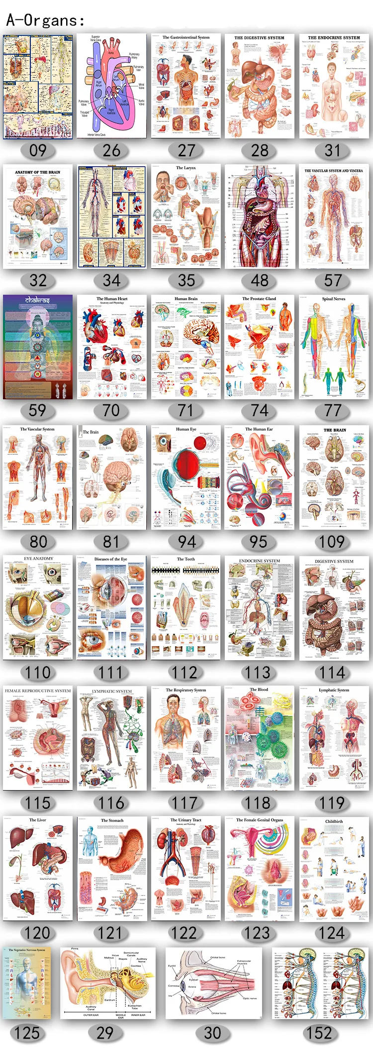Плакат на стену в стиле анатомии человека, художественная шелковая ...