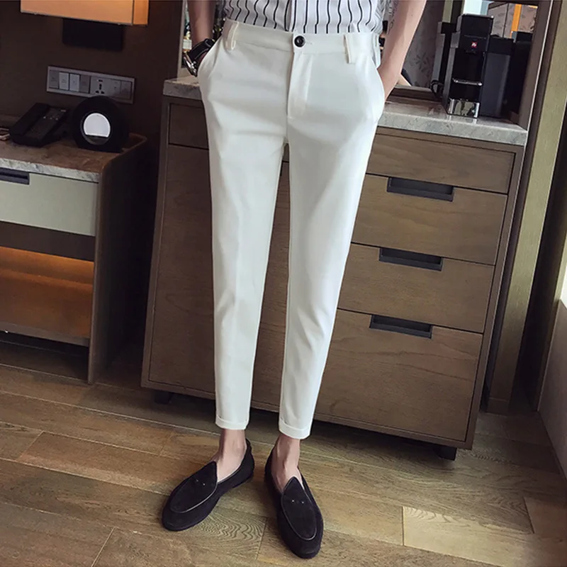 Новые повседневные белые мужские брюки, узкие дышащие удобные высококачественные мужские брендовые деловые брюки