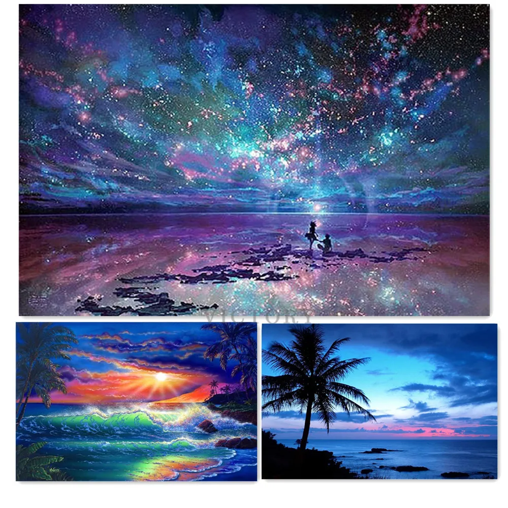 5D алмазов картина звездное небо Алмазный Мозаика пляж закат "сделай сам" полная круглая Алмазная вышивка крестиком Стразы домашний декор