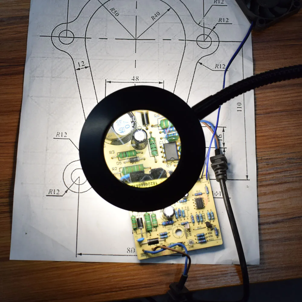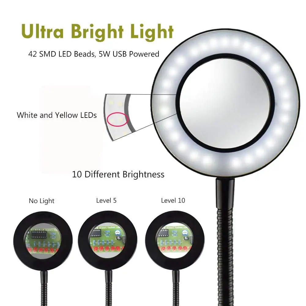 5. Увеличительное стекло с светодиодный светильник, цветовая температура светодиодный светильник может быть скорректирована в 3 шага и яркость может быть скорректирована в 11 шагов, он может удовлетворить различные рабочие среды.