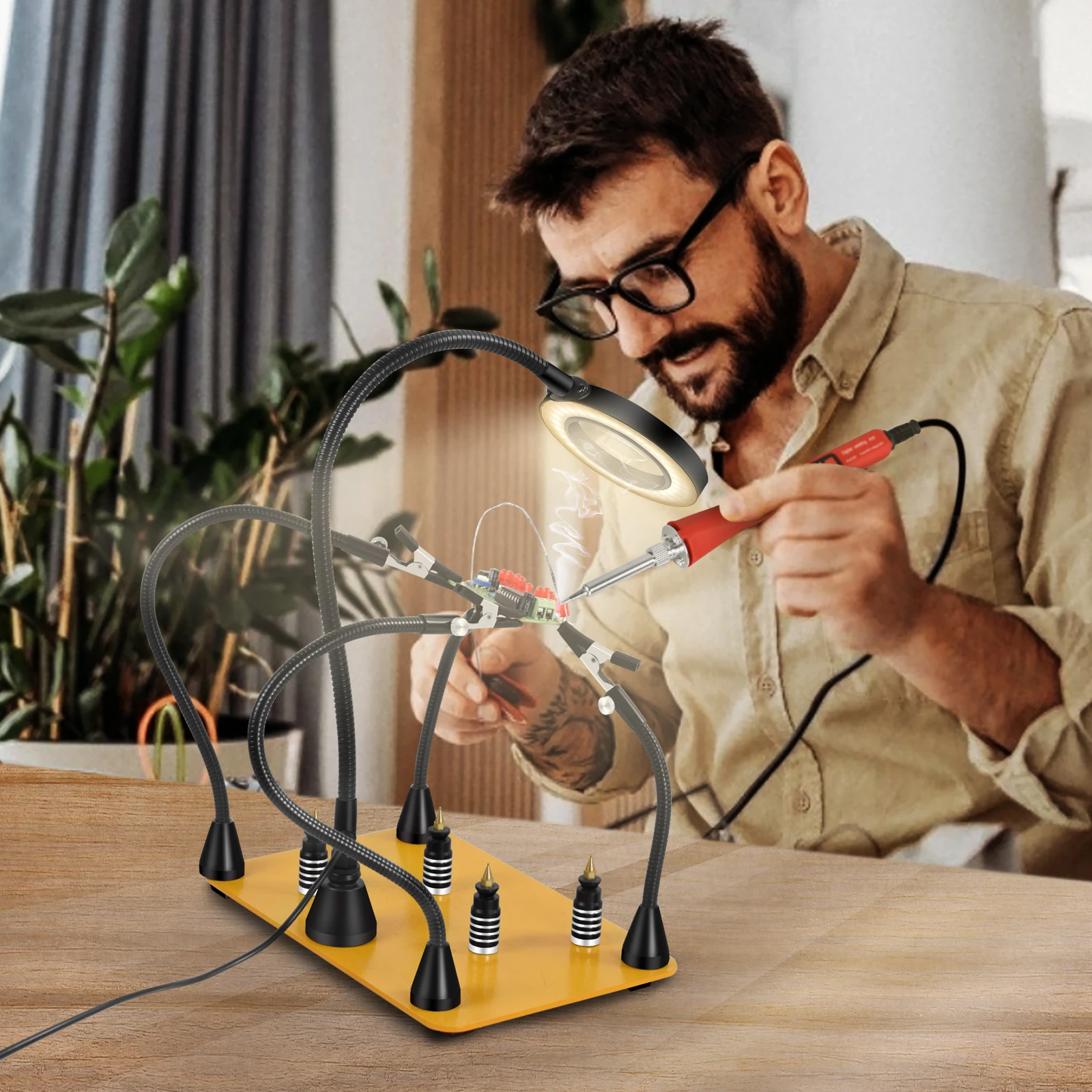 NEWACALOX магнитное основание держатель печатной платы инструмент пайка Рука помощи 3X светодиодный освещенный увеличитель лампа Сварка инструмент для третьей руки