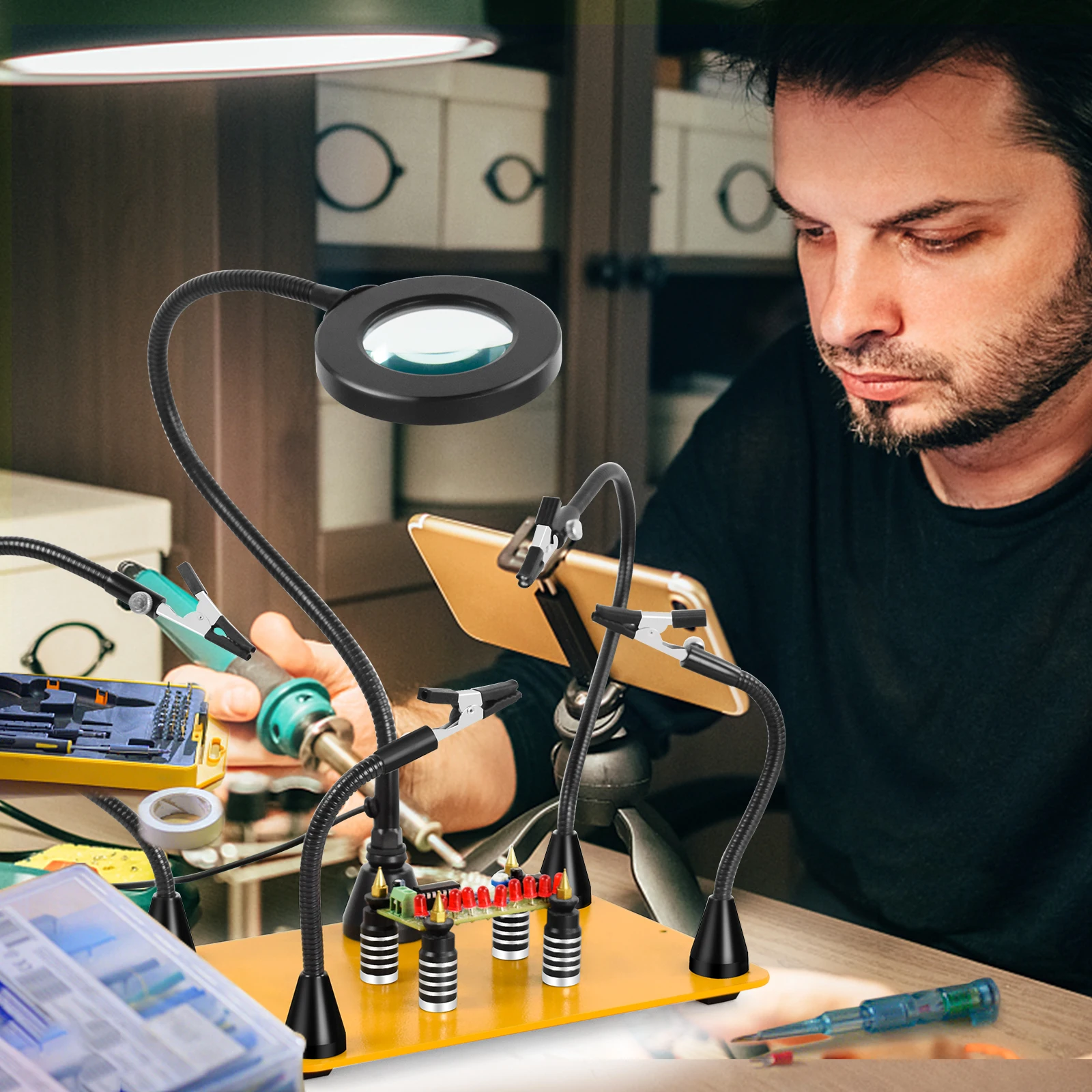 Магнитное основание для пайки NEWACALOX, вспомогательные руки, держатель печатной платы с лампой 3X светодиодный освещенный увеличитель, набор инструментов для сварки