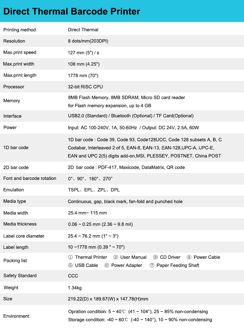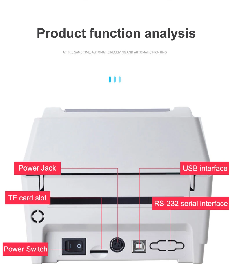 ● 127 мм/сек. высокоскоростная печать, высокая скорость и стабильность● Интеллектуальная регулировка температуры непрерывной печати, стабильная работа машины● Новый дизайн головы для более стабильного качества печати● Большая емкость памяти 8 Мб Flash, 8 Мб SDRAM● Инновационный дизайн корпуса● Стандартный интерфейс связи USB 2,0