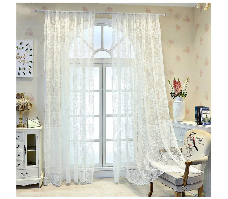 Белые кружевные тюлевые шторы для спальни, шторы для цветочных окон в европейском стиле, прозрачная вуаль для гостиной, кухни, драпировки для комнаты девочки