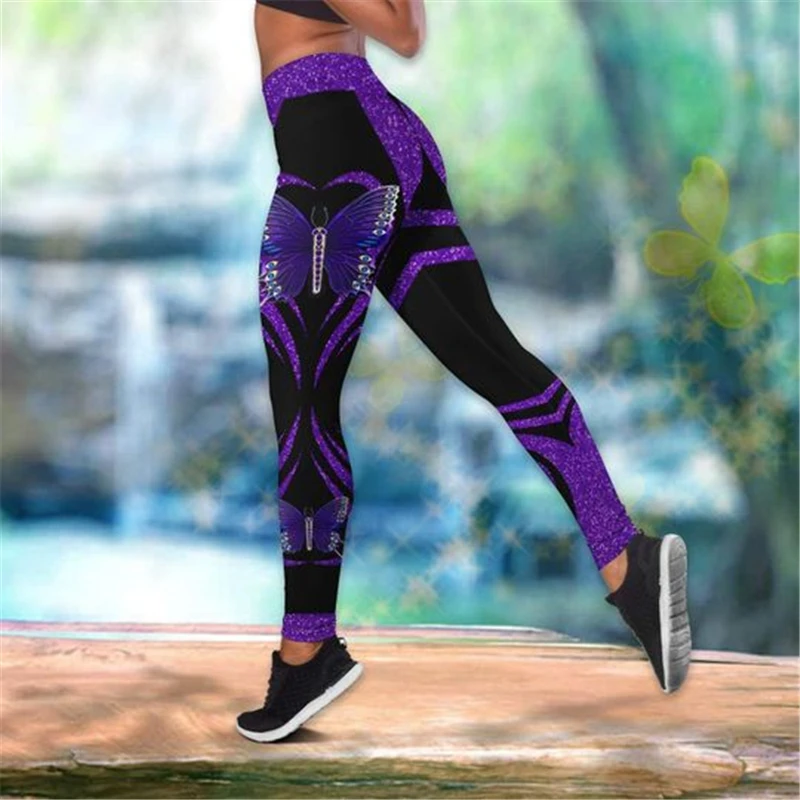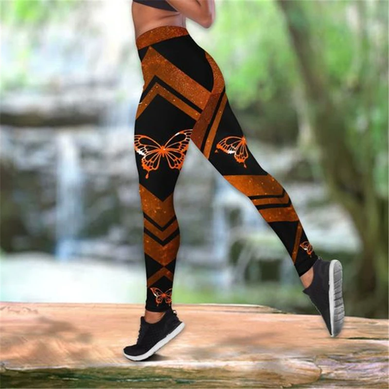 Леггинсы женские эластичные с принтом бабочек и высокой талией