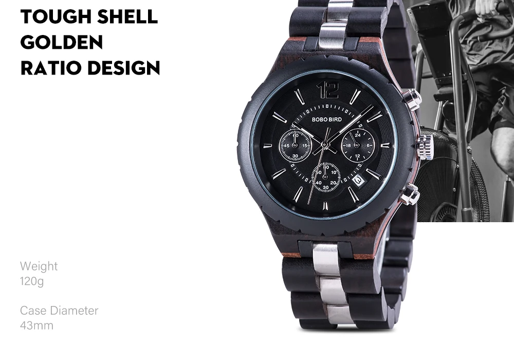 Бренд часов: BOBO BIRDТип часов: деревянные мужские наручные часыМатериал корпуса: дерево и нержавеющая стальВес: 117 гМаксимальный диаметр: 43 мм