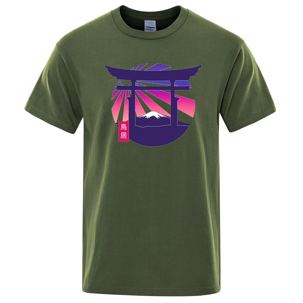 Мужская футболка с принтом Torii Gate Fuji, в японском стиле, модная качественная летняя футболка, в стиле Харадзюку, свободные топы