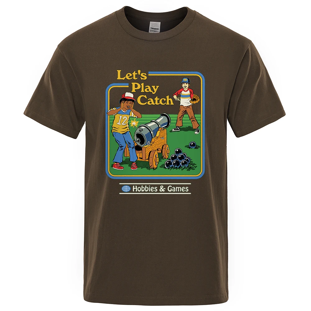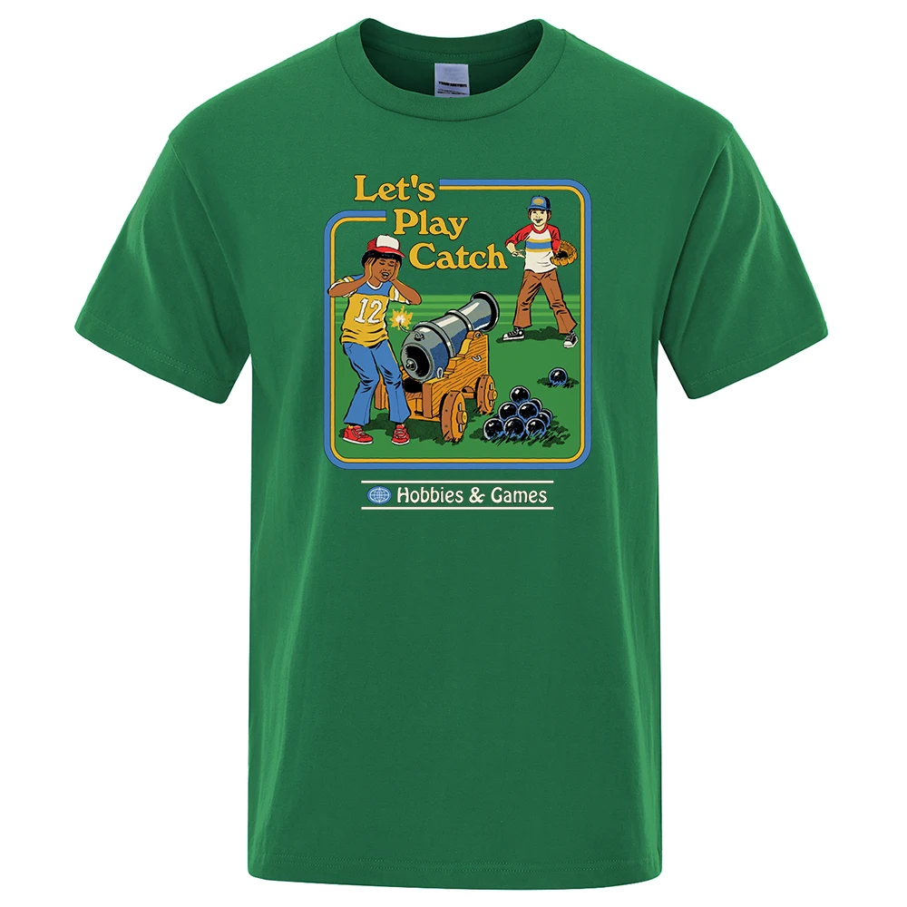 Футболка мужская с принтом Let's Play Catch Comics, Повседневная дышащая рубашка с круглым вырезом, модный Свободный Топ оверсайз, на лето