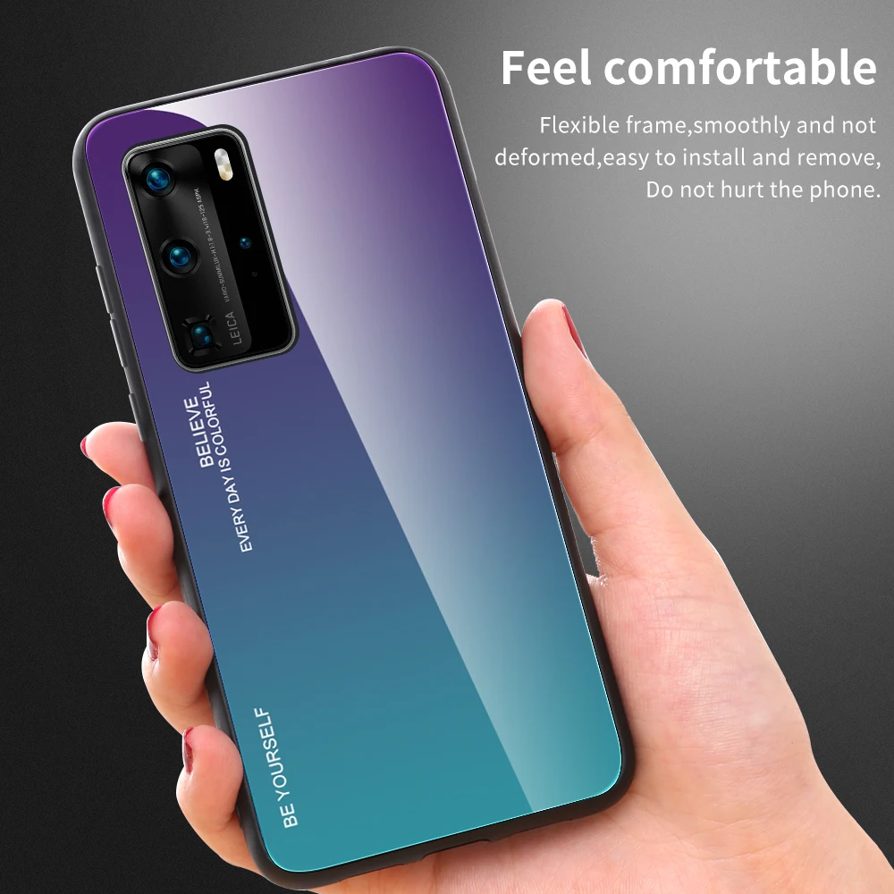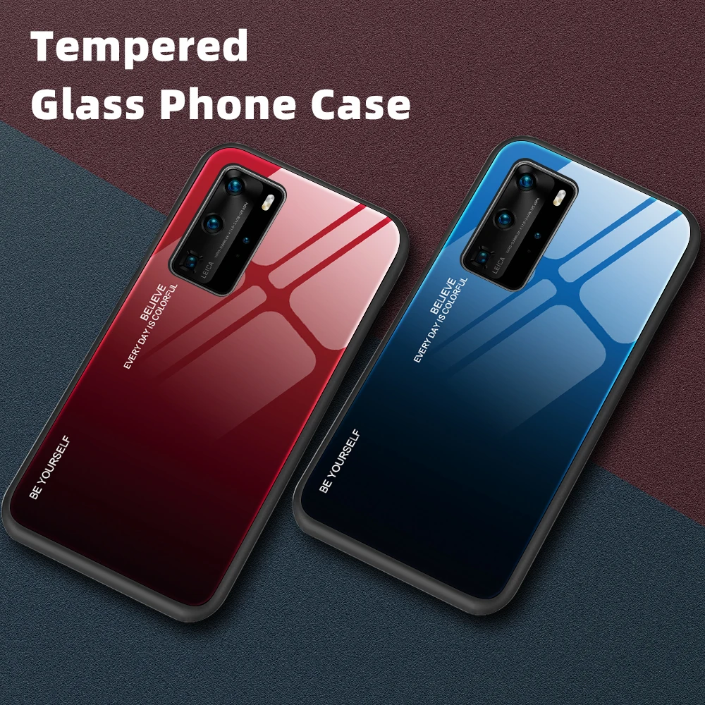 Градиентный чехол из закаленного стекла для Huawei P20 Pro P50 P40 P30 Lite Nova8 Y9S Y7A Mate 30 40 20 10 для Honor 50 30 20s 8X 10 9 9X