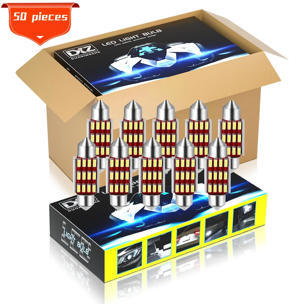 DXZ, 50 шт в наборе, C5W C10W Светодиодный лампочки Canbus Festoon-31MM 36 мм39 мм41 мм 4014 чип салона Купол светильник чтения светильник авто светодиодные лампы 12 В