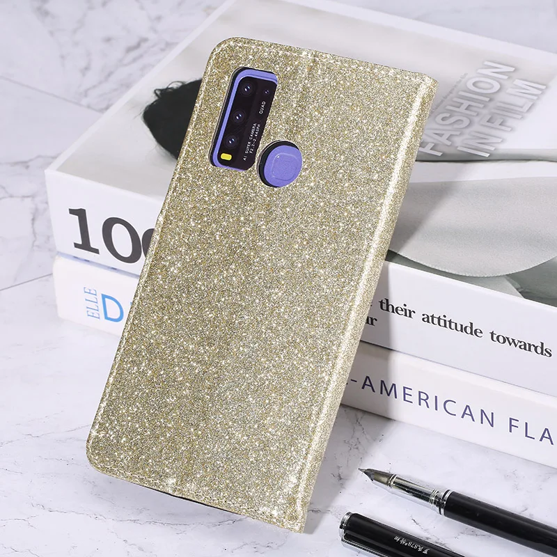 Роскошный блестящий кожаный флип-кошелек для Vivo Y11s, чехол для т...