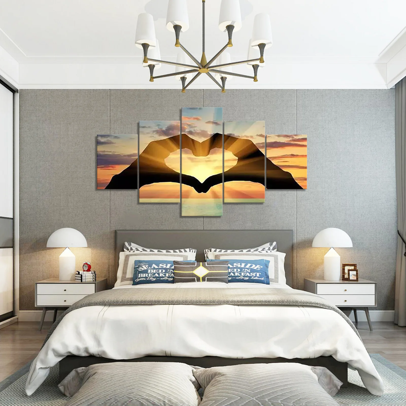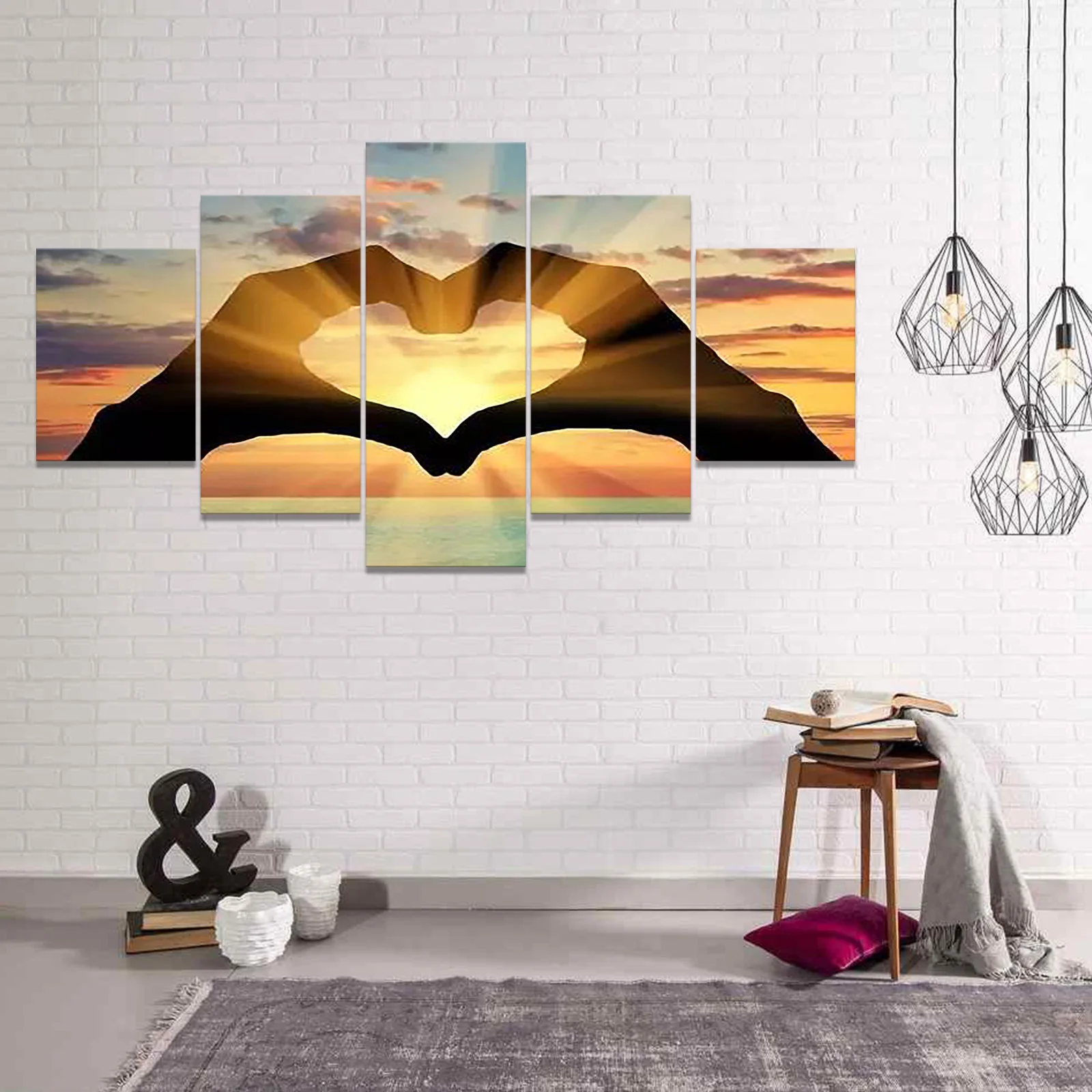 Wall Art HD с 5 шт. сердце Форма картинки любовь закат Картины модульная холст современного дома Декор в гостиную произведения искусства