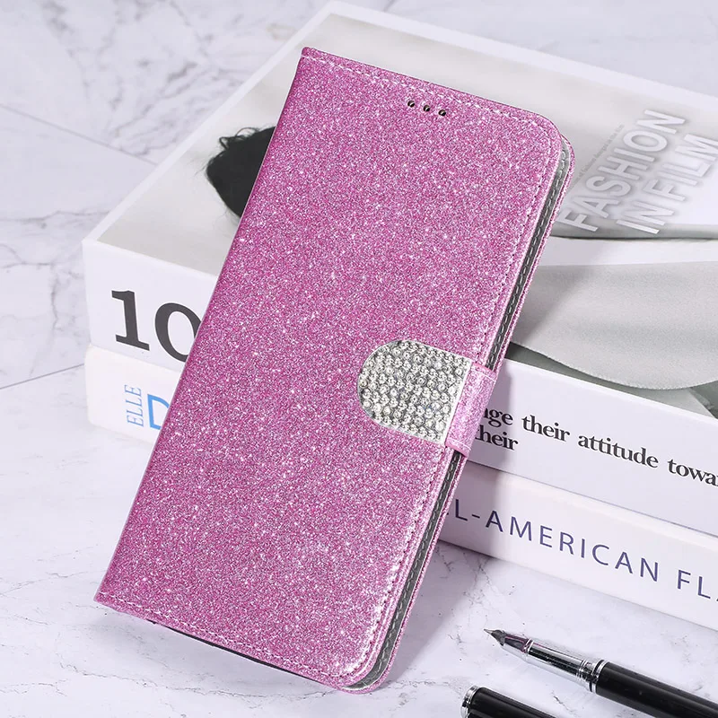 Блестящий Алмазный откидной кожаный чехол-бумажник для телефона Son...