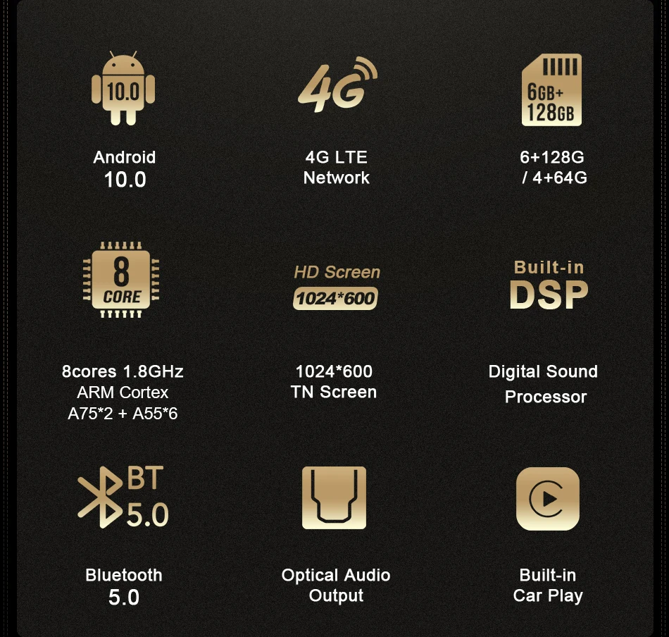 K6 Plus 128G ---UIS7862| Android 10,0 |8 ядер (A75 * 2 + A55 * 6) | 6G + 128G | 1024*600 TN| Радио 7708 | Усилитель 7851L