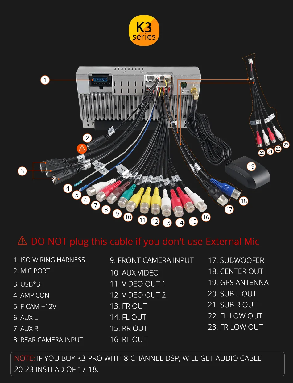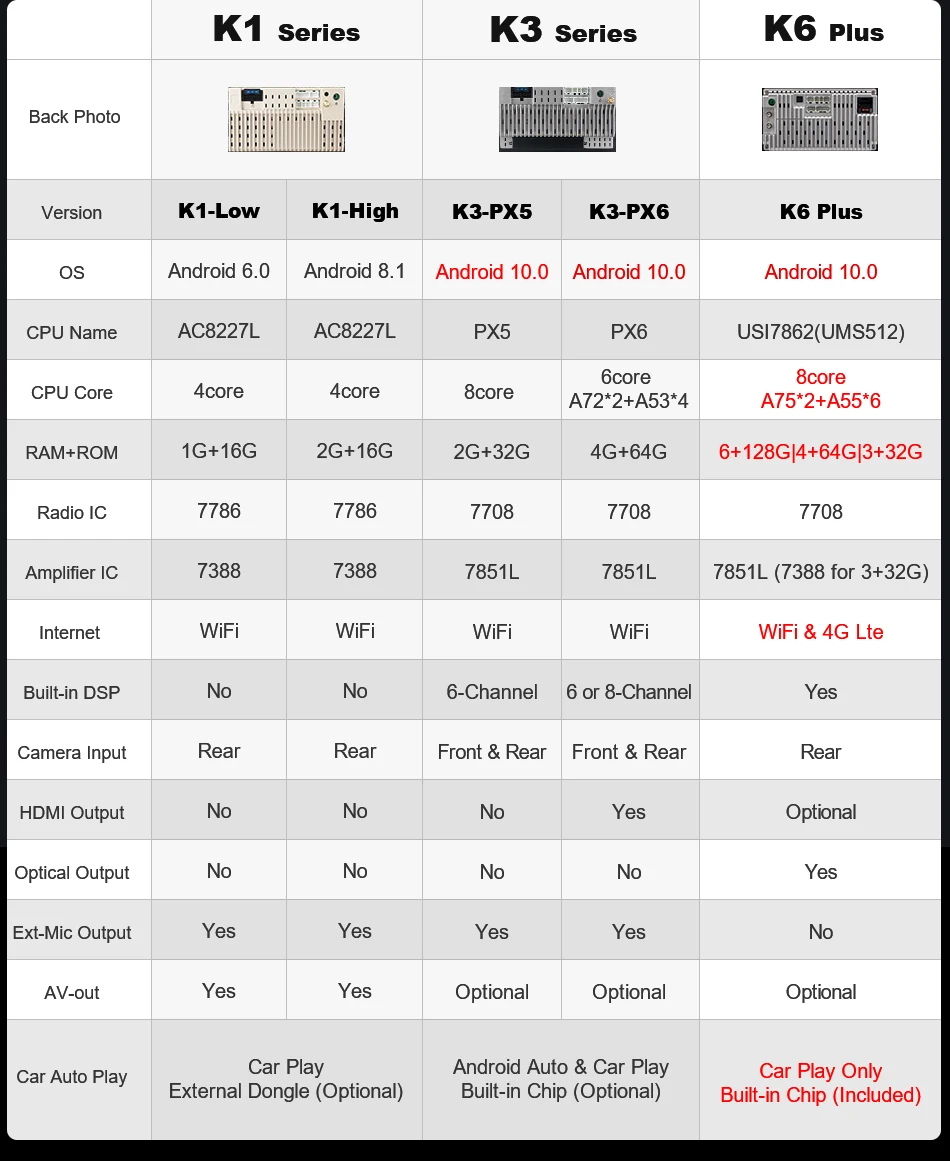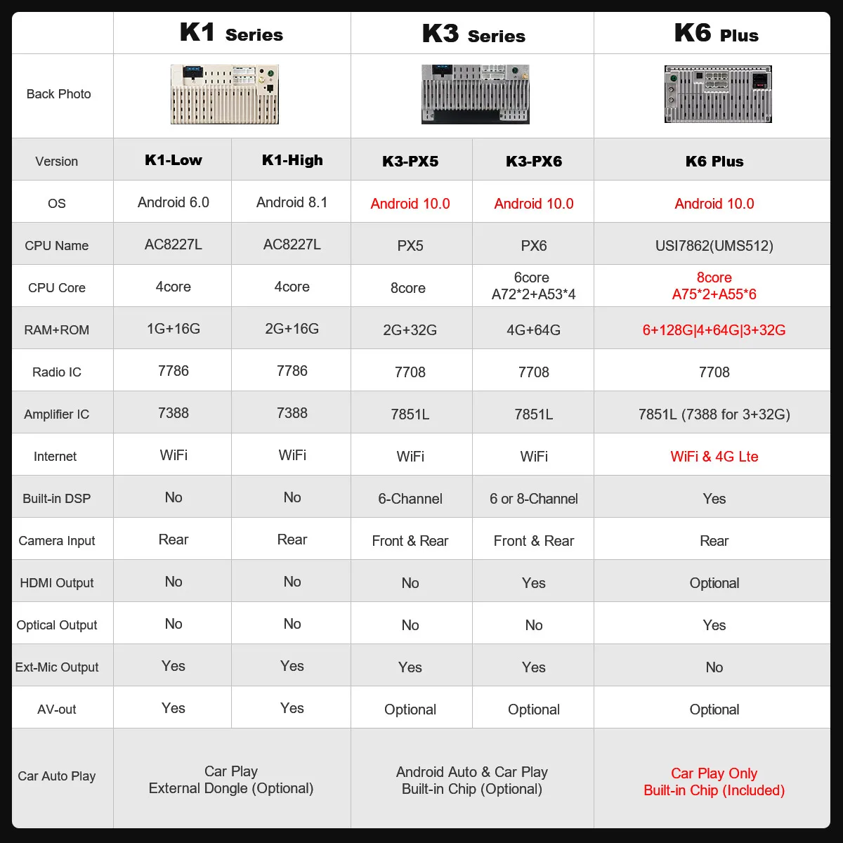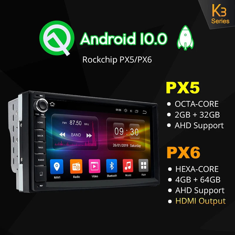 K3-PX6 ------ PX6 | Android 10,0 | 6 ядер (A75 * 2 + A53 * 4)| 4G + 64G |1024*600 TN | Радио 7708 | Усилитель 7851L