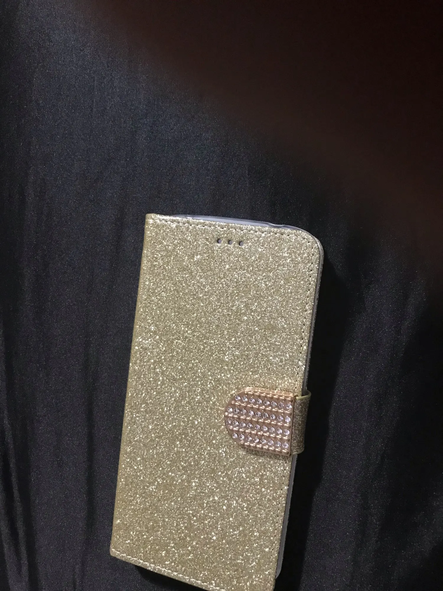 Роскошный блестящий кожаный флип-кошелек со стразами для телефона с...