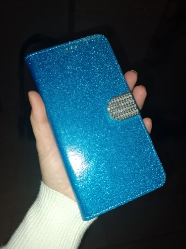 Кожаный чехол-книжка с отделением для карт, с блестками и бриллиант...