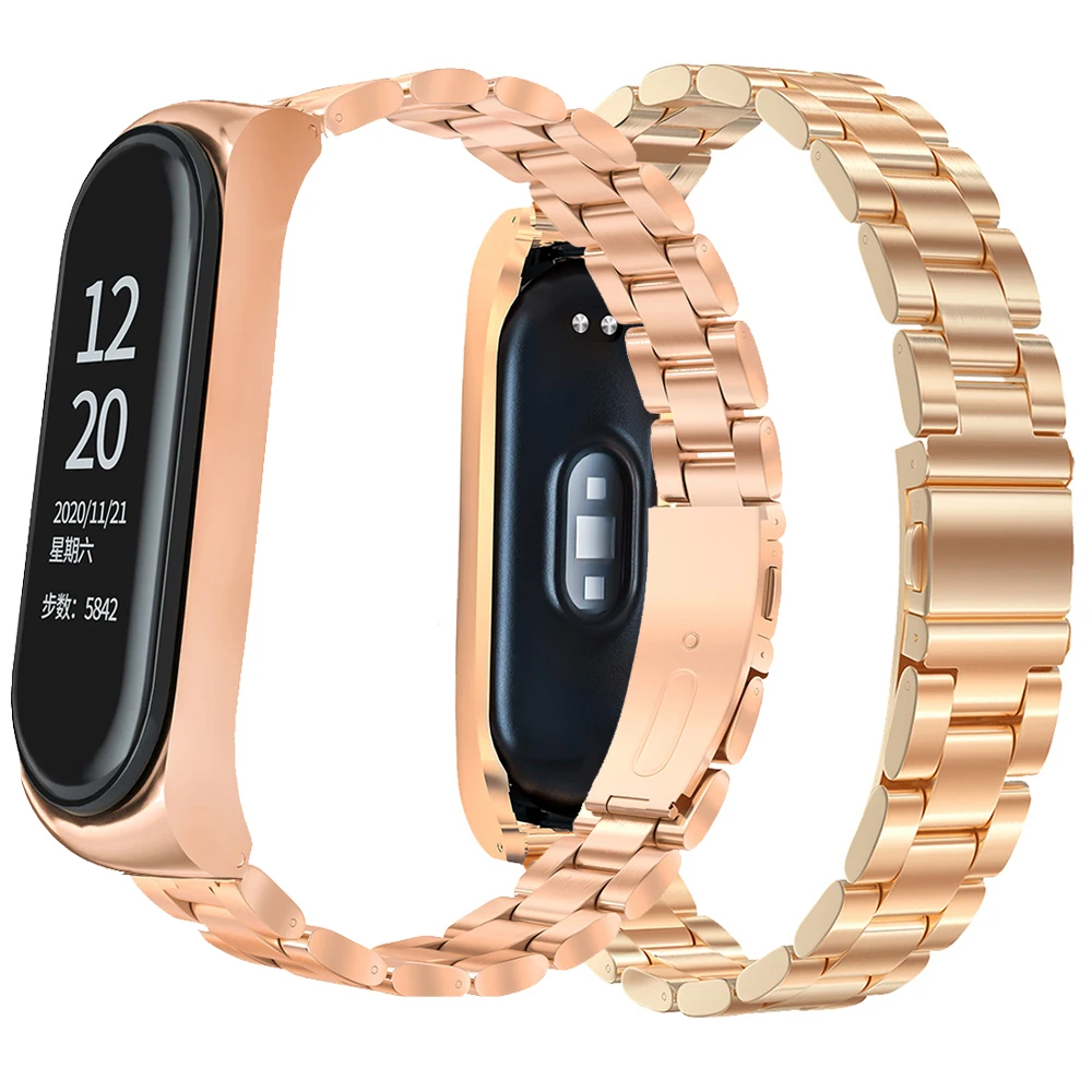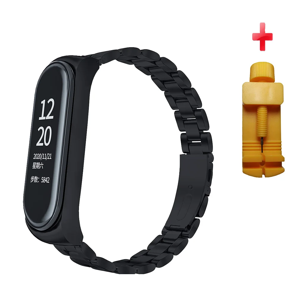 Металлический ремешок для Xiaomi Mi Band 3456, браслет из нержавеющей стали, браслет с тремя бусинами Xaomi, смарт-браслет, аксессуары NFC